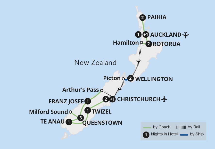 Discover New Zealand's dynamic cities, extraordinary national parks, spectacular alpine mountains, glacial lakes and breathtaking Fiordland on this extensive tour of the North and South Islands. This epic adventure combines the greatest features of this wonderful country in one holiday: superb railways, incredible landscapes and the warm and...